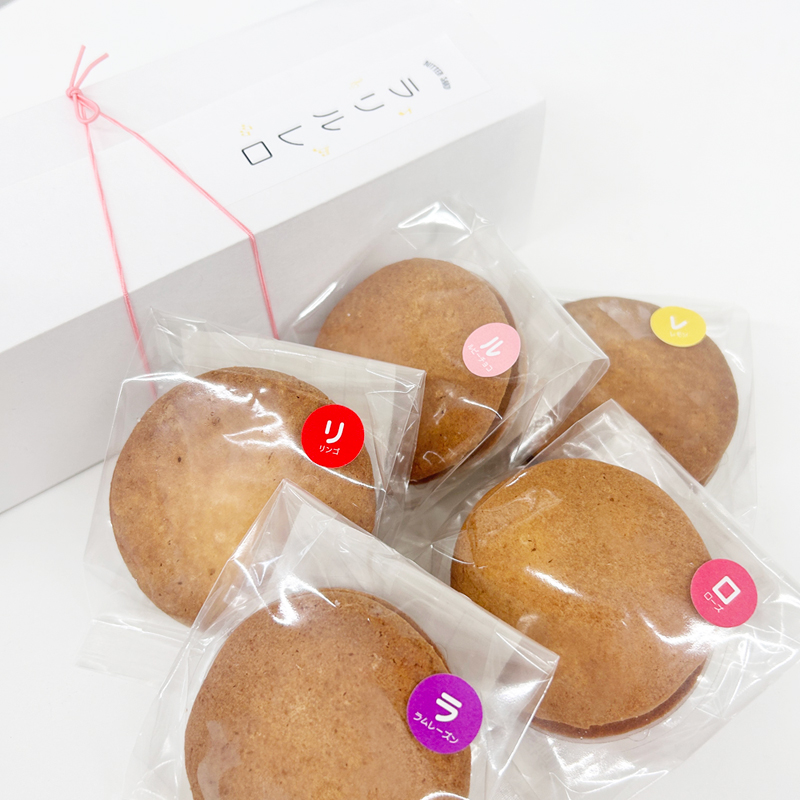 もみじの色づく移ろいを、しっとりしたバター風味の焼き菓子で表現しました。白(しろあん)緑(抹茶あん)黄(黄身あん)橙(こしあん)